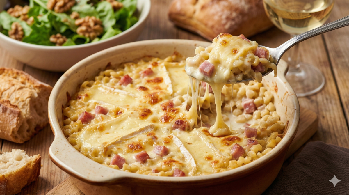 Un gratin savoyard express aux crozets, avec un cœur fondant au reblochon