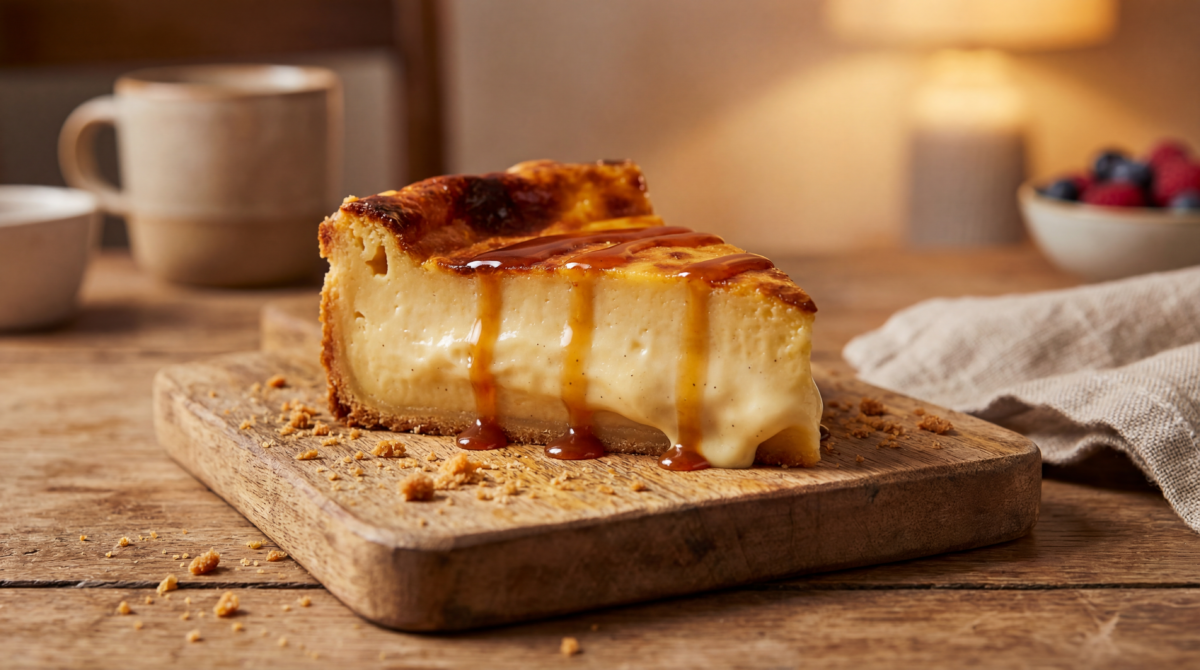 Ce flan pâtissier sans farine garde une tenue ferme à la découpe, tout en restant très fondant à la cuillère. La surface se dore légèrement, tandis que l’intérieur reste jaune pâle et tremblotant juste ce qu’il faut.
