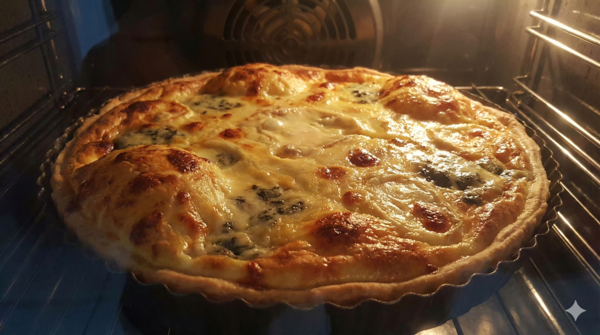 Le résultat : une tarte au cœur crémeux, au dessus gratiné qui cloque légèrement, avec des zones plus parfumées là où se cachent le bleu et le chèvre. À la découpe, le fromage file, la garniture tremble juste ce qu’il faut, et tout le monde tend déjà son assiette. C’est le genre de plat qui transforme un simple soir de semaine en vrai moment de réconfort.