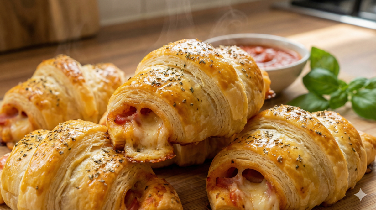 Le principe est aussi simple qu’efficace : une pâte feuilletée découpée comme une pizza, une base tomate-origan, un peu de jambon et de mozzarella, puis une cuisson express qui donne des mini croissants dorés, croustillants, avec un cœur fondant et un parfum “pizza” ultra régressif. Parfaits pour un apéro, un buffet, ou un dîner improvisé avec une salade.