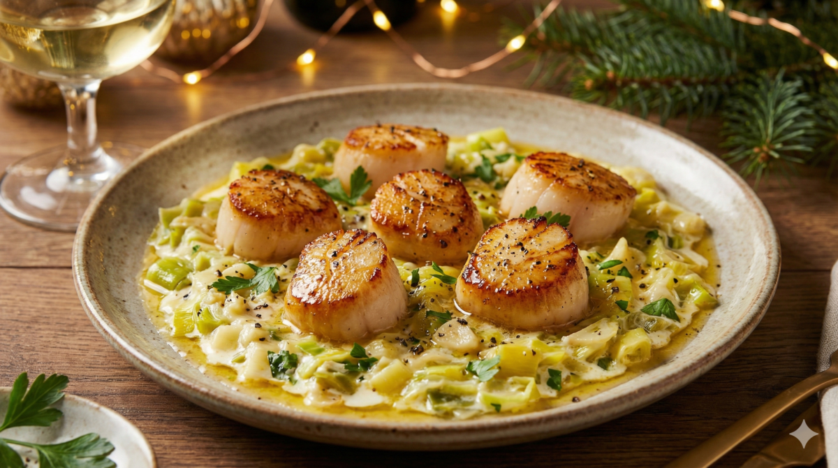 Saint-Jacques poêlées sur fondue de poireaux : le duo chic qui fait toujours l’unanimité