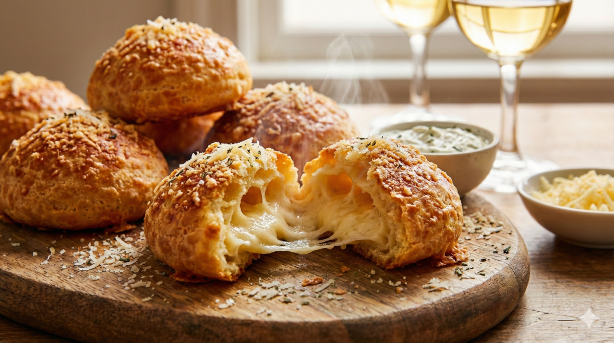 Derrière leur petite coque dorée et croustillante, ces gougères cachent un intérieur fondant au bon goût de comté. Servies à l’apéritif, avec un verre de vin, une coupe de bulles ou même une simple soupe, elles font toujours le même effet : on en prend une “pour goûter”, puis une deuxième… et le plat se vide sans qu’on s’en rende compte.