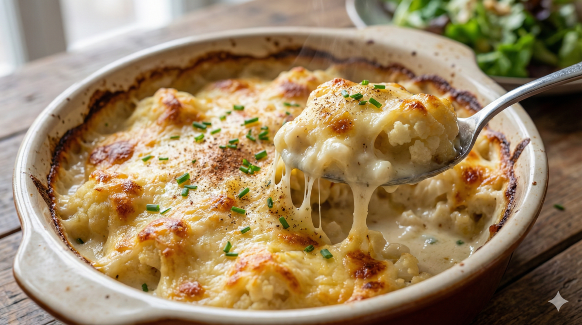 Ce gratin de chou-fleur est exactement ce genre de plat “pont” : il fait doucement découvrir le légume, en misant sur le côté réconfortant de la sauce et du fromage. Servi avec une viande rôtie, un poisson simple ou même une salade verte, il devient vite un classique du quotidien… qu’on ressort aussi volontiers les jours de froid.