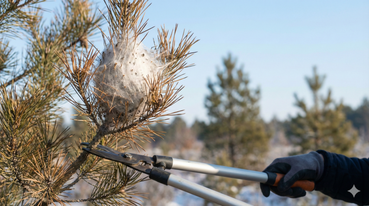 En réalité, tant que les chenilles restent regroupées dans leur nid, une période idéale s’ouvre à vous. En hiver, le froid limite leurs déplacements, le vent léger sèche les aiguilles et vous pouvez intervenir sans que les poils urticants se dispersent partout. Le geste mécanique devient alors à la fois précis, maîtrisé et relativement propre.